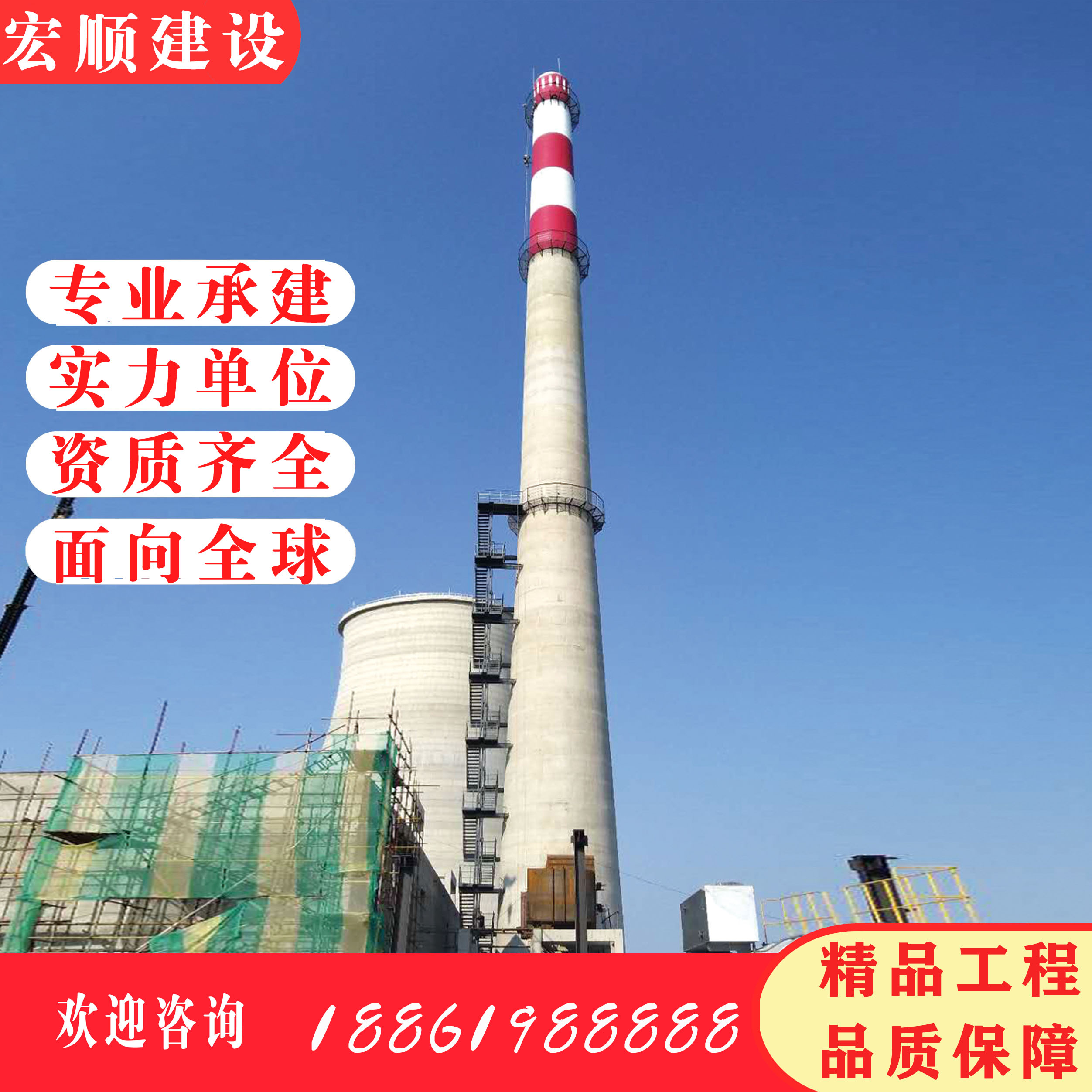“宏順建設(shè)工程有限公司”是一家集土建、防腐、保溫、鋼結(jié)構(gòu)為一體的大型綜合性建筑企業(yè)。專業(yè)從事高空作業(yè),包括高聳構(gòu)筑物(煙囪、冷卻塔、灰?guī)欤┬陆?、安裝、維修、防腐、保溫、拆除等建筑工程。